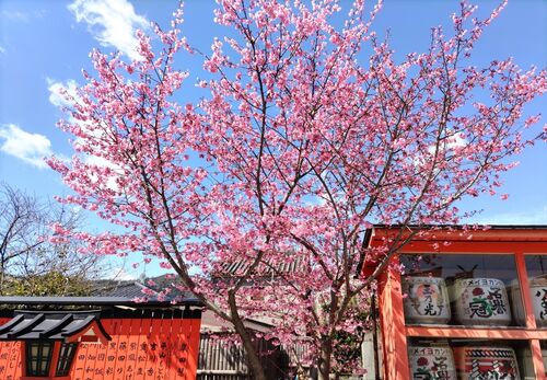 三月も下旬になり、京都でも各地で桜の開花が伝えられていますが、一部を除き満開まではもう少しかかりそう…でも今日は快晴でじっとしていられない! そんな私が思い出したのが、ここ車折神社です。昨年嵐山の桜が満開の時に、ついでに見に行ったのですが、…